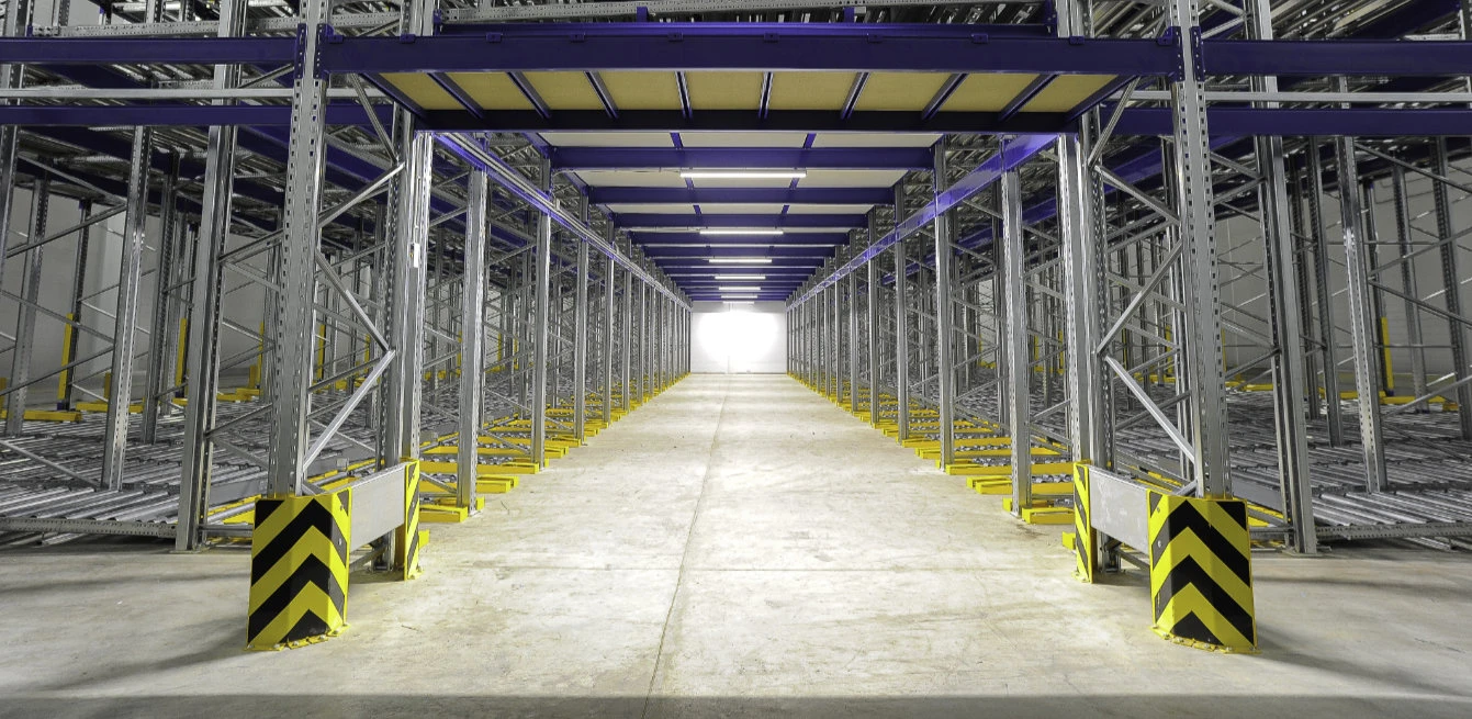 Гравитационный стеллаж для паллет наиболее выгодно использовать для создания буферной зоны на участке экспедиции. Они упрощают комплектацию и сортировку больших объемов грузов с ограниченным сроком хранения.
