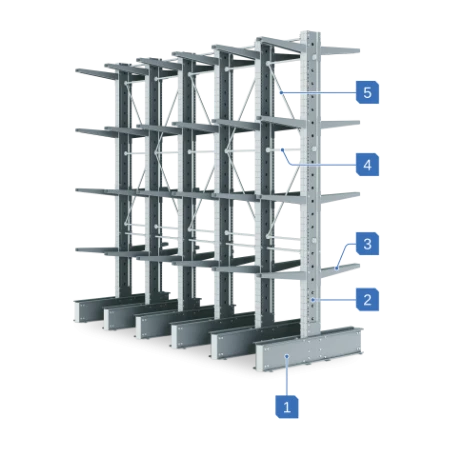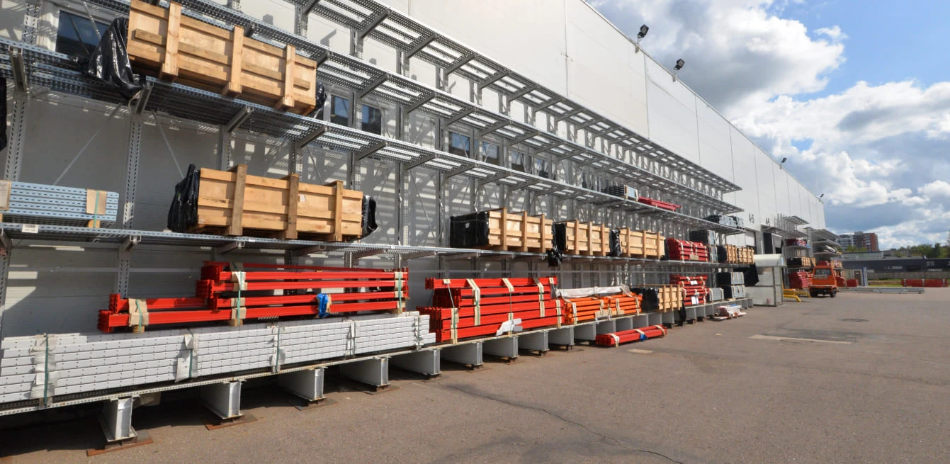 - Возможность установки как внутри помещения, так и на улице. Консольные стеллажи покрываются полимерно-порошковым покрытием, устойчивым к коррозии.