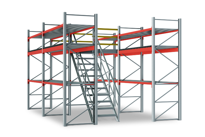 Полочный мезонин. Габариты: 4000x3200 мм. Проливной метал. настил