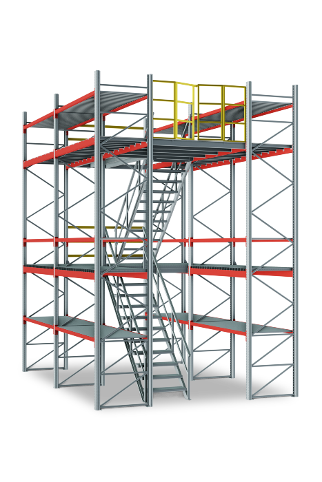 Полочный мезонин. Габариты: 4000x3200 мм. Проливной метал. настил
