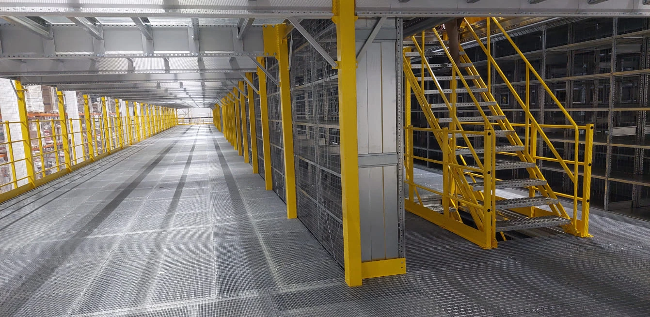 Мезонин на колоннах, или платформенный мезонин, является незаменимой системой хранения на складах, на которых требуется увеличение пространства для хранения различных негабаритных товаров. Конструкция позволяет организовать легкий доступ к грузам за счет широких проходов. Кроме того, использование платформенного решения станет идеальным вариантом для хранения не только крупного, но и мелкоштучного товара при установке полочных стеллажей на мезонинную конструкцию.