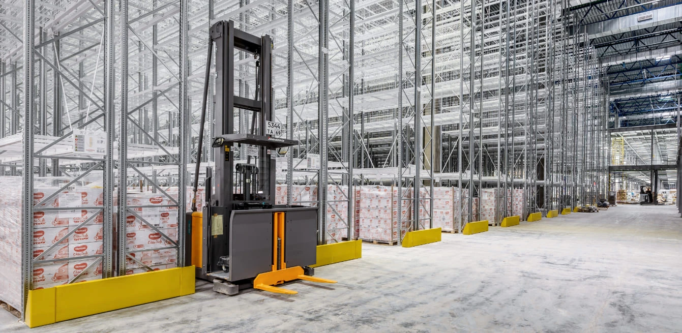 Данный тип подходит для всех складов, где задействована габаритная техника в виде погрузчика или штабелера с шириной рабочего коридора (AST) от 2700мм и выше.