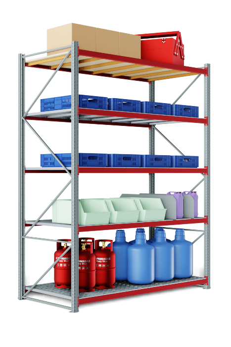 Складской стеллаж 1500x600x2200 мм (ДхГхВ). Полки цинк: 5 шт.